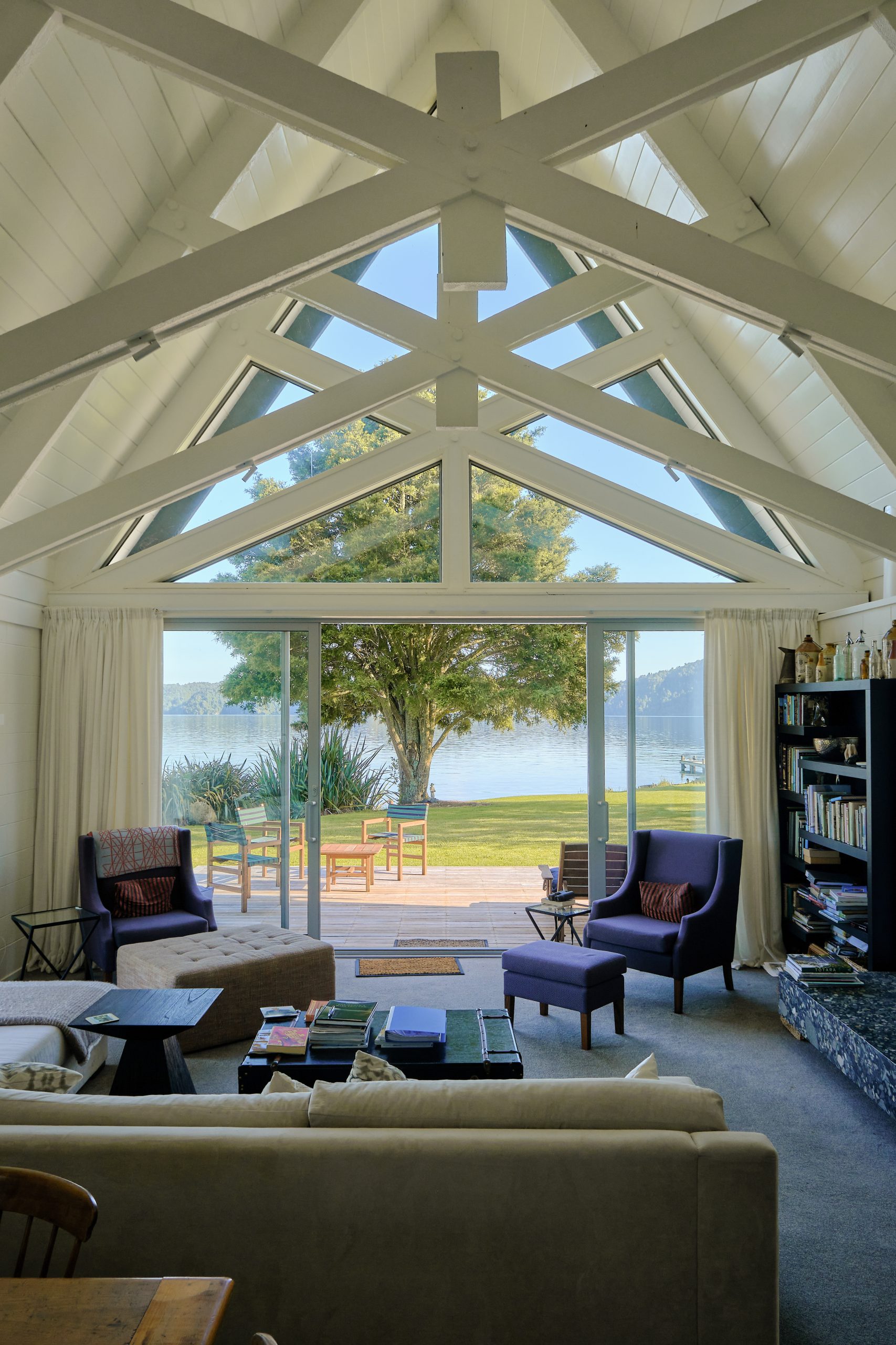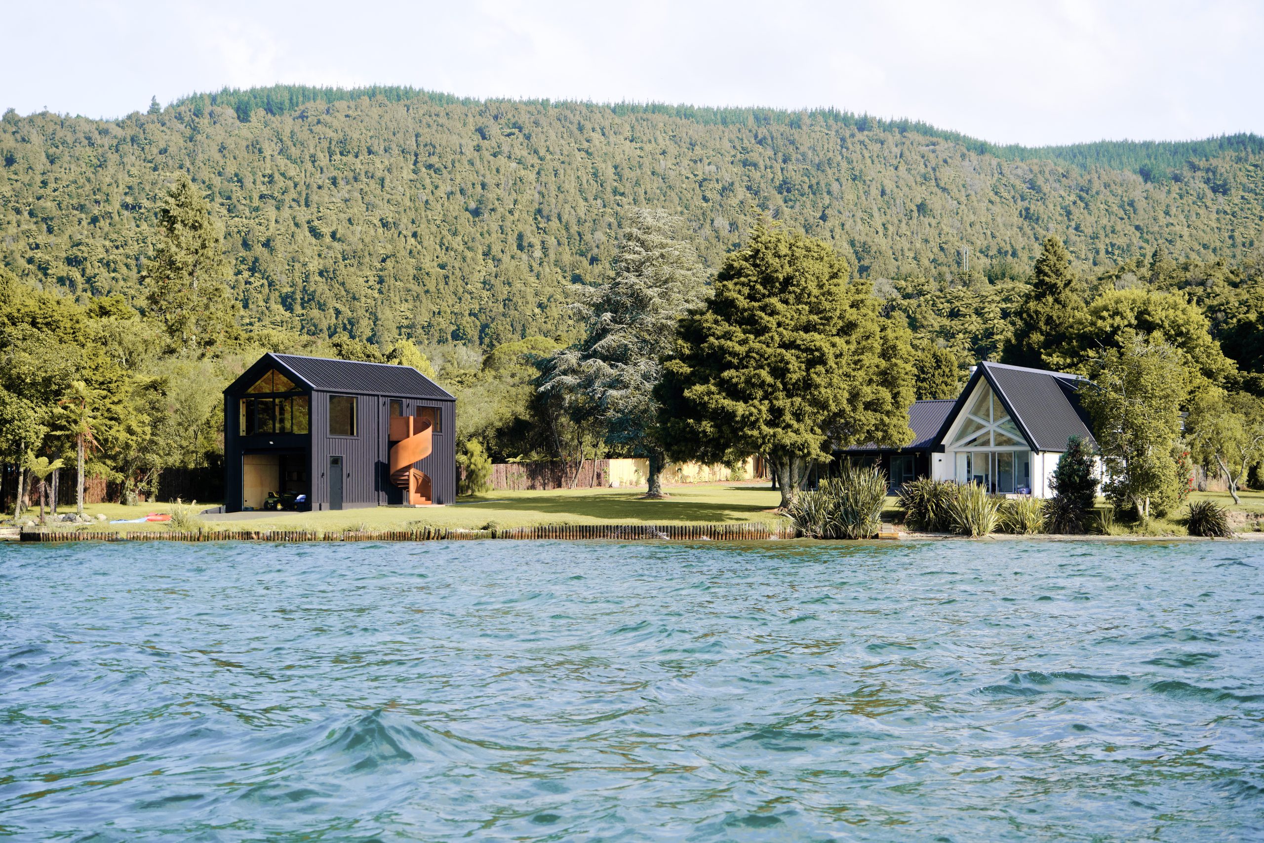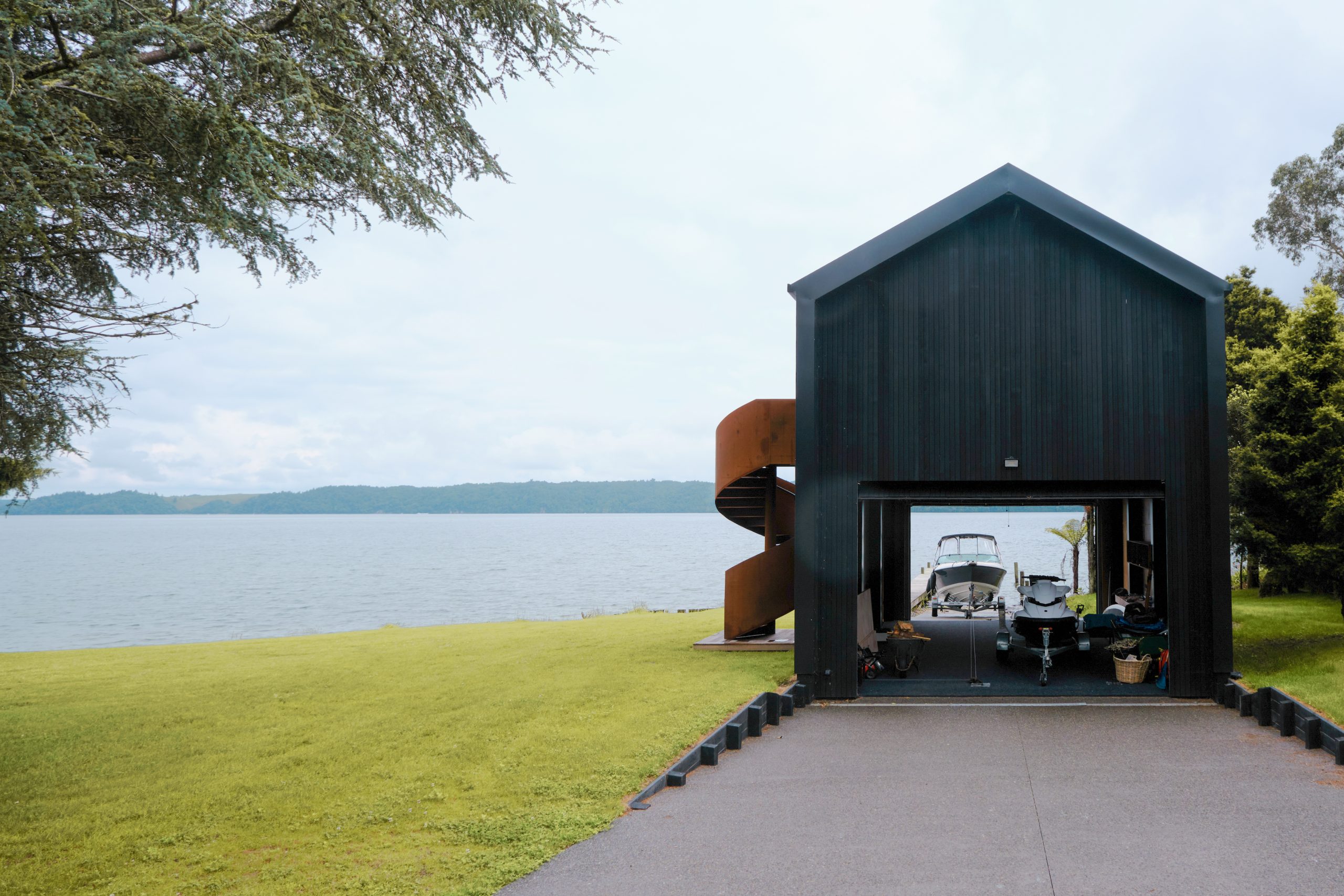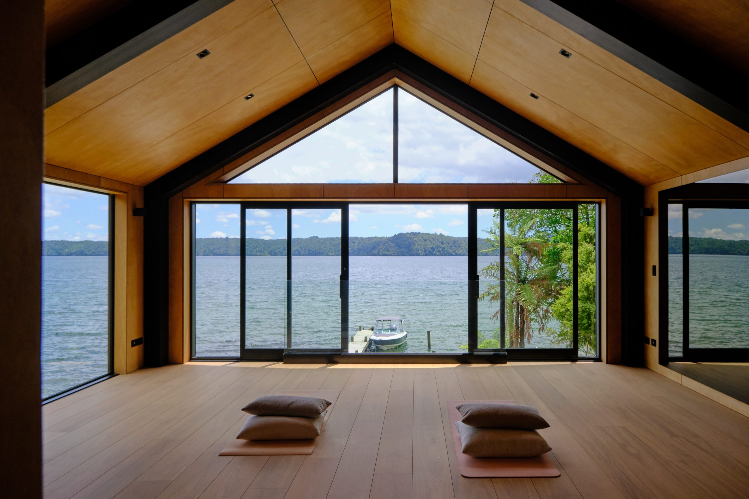 The existing boatshed was in disrepair, and as part of the upgrade work to the jetty and lake access, this was replaced. The owners took the opportunity to add another level on the existing footprint of the old boatshed. This now contain a yoga studio and facilities for the owner’s yoga and holistic health practice.