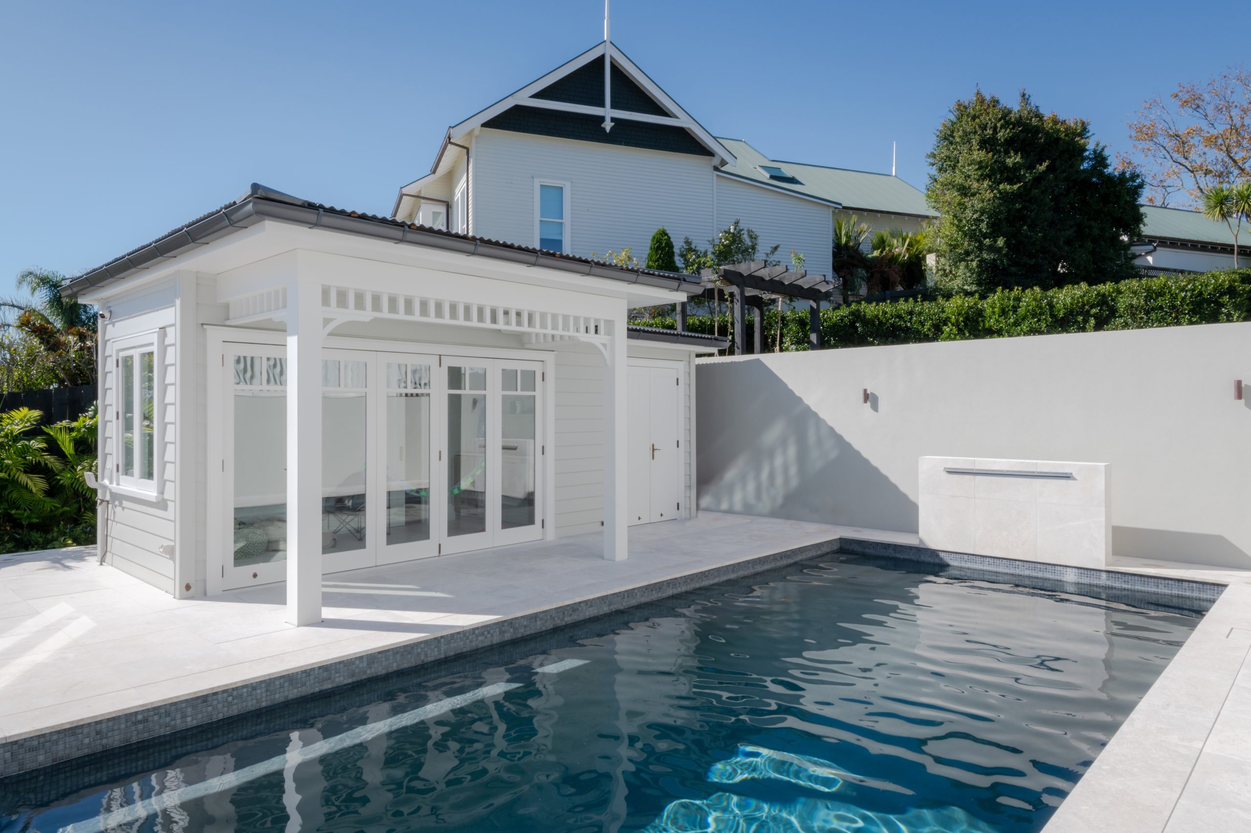 As well as being mindful of the need to retain proportions and detailing in keeping with the original intent, we had to work in closely with structural engineers to bring the house up to modern code standards. This proved challenging, especially with our clients’ desire to ‘open up’ the home to take advantage of the sweeping views it commands across Remuera to the Hauraki Gulf. The result is a home that is virtually indistinguishable from the original old drawings commissioned for the old house. The appearance of the home belies the comfortable and contemporary facilities it houses, and we have been able to provide easy indoor-outdoor living within the bounds of a grand old home on Remuera’s Northern Slopes.